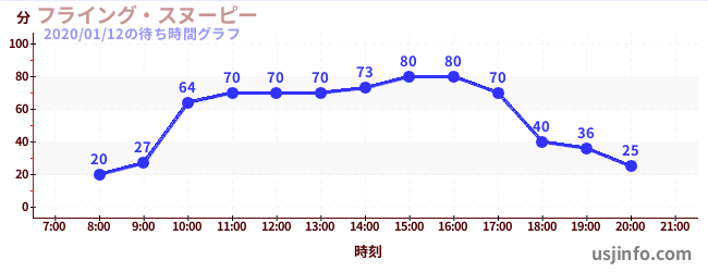 • フライング・スヌーピー$B$N(B2020年01月12日の待ち時間