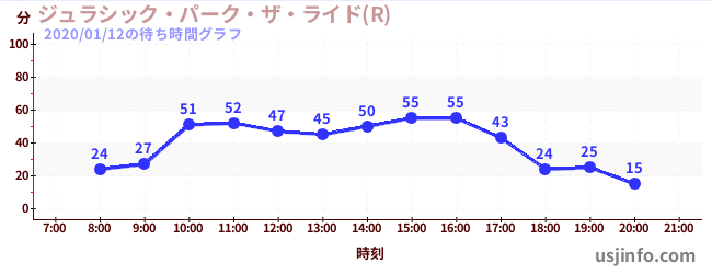 • ジュラシック・パーク・ザ・ライド(R)$B$N(B2020年01月12日の待ち時間