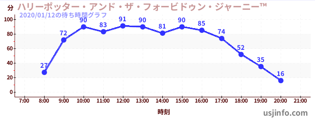 • ハリーポッター・アンド・ザ・フォービドゥン・ジャーニー™$B$N(B2020年01月12日の待ち時間