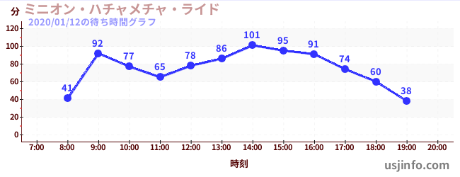 • ミニオン・ハチャメチャ・ライド$B$N(B2020年01月12日の待ち時間