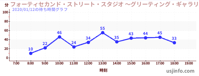 • フォーティセカンド・ストリート・スタジオ ~グリーティング・ギャラリー~ ミニオン$B$N(B2020年01月12日の待ち時間