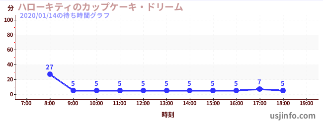 • ハローキティのカップケーキ・ドリーム$B$N(B2020年01月14日の待ち時間