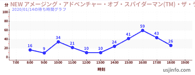 • NEW アメージング・アドベンチャー・オブ・スパイダーマン(TM)・ザ・ライド 4K3D$B$N(B2020年01月14日の待ち時間
