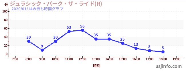 • ジュラシック・パーク・ザ・ライド(R)$B$N(B2020年01月14日の待ち時間