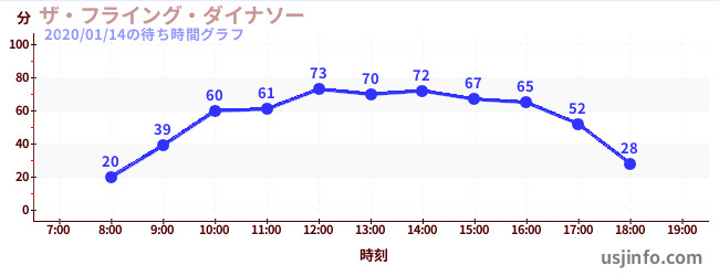 • ザ・フライング・ダイナソー$B$N(B2020年01月14日の待ち時間