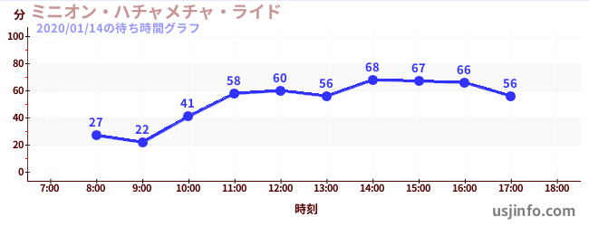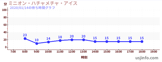• ミニオン・ハチャメチャ・ライド$B$N(B2020年01月14日の待ち時間
