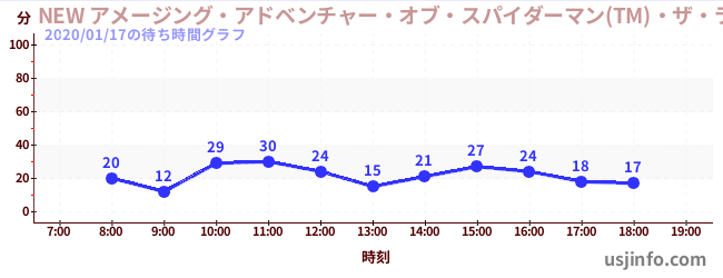 • NEW アメージング・アドベンチャー・オブ・スパイダーマン(TM)・ザ・ライド 4K3D$B$N(B2020年01月17日の待ち時間