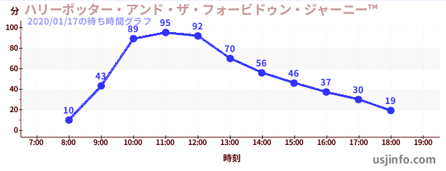 • ハリーポッター・アンド・ザ・フォービドゥン・ジャーニー™$B$N(B2020年01月17日の待ち時間