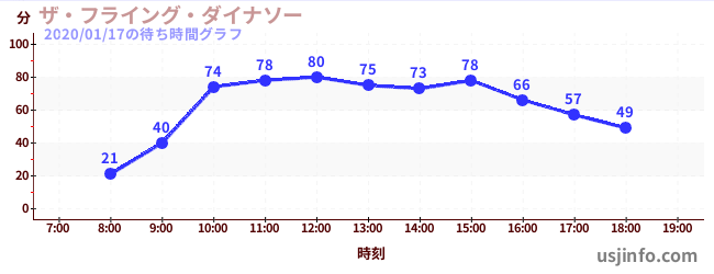 • ザ・フライング・ダイナソー$B$N(B2020年01月17日の待ち時間