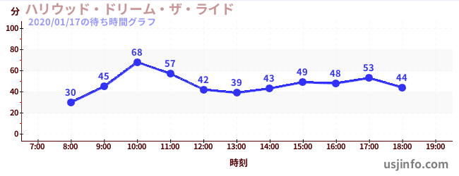• ハリウッド・ドリーム・ザ・ライド$B$N(B2020年01月17日の待ち時間