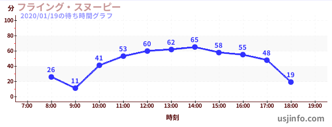 • フライング・スヌーピー$B$N(B2020年01月19日の待ち時間