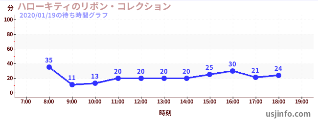 • ハローキティのリボン・コレクション$B$N(B2020年01月19日の待ち時間