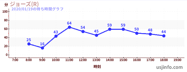• ジョーズ(R)$B$N(B2020年01月19日の待ち時間