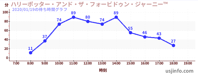 • ハリーポッター・アンド・ザ・フォービドゥン・ジャーニー™$B$N(B2020年01月19日の待ち時間