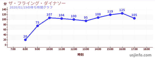 • ザ・フライング・ダイナソー$B$N(B2020年01月19日の待ち時間