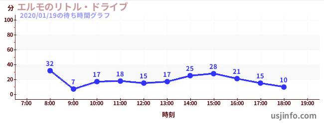 • エルモのリトル・ドライブ$B$N(B2020年01月19日の待ち時間