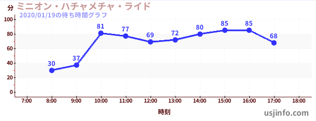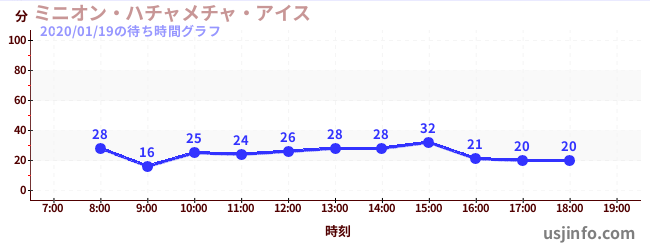 • ミニオン・ハチャメチャ・ライド$B$N(B2020年01月19日の待ち時間