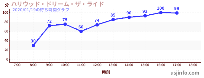• ハリウッド・ドリーム・ザ・ライド$B$N(B2020年01月19日の待ち時間