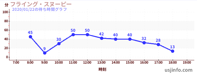 • フライング・スヌーピー$B$N(B2020年01月22日の待ち時間