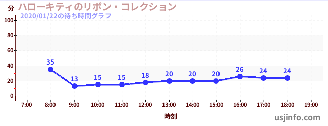 • ハローキティのリボン・コレクション$B$N(B2020年01月22日の待ち時間