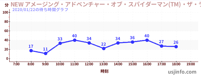 • NEW アメージング・アドベンチャー・オブ・スパイダーマン(TM)・ザ・ライド 4K3D$B$N(B2020年01月22日の待ち時間