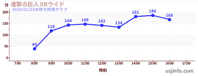 • 進撃の巨人 XRライド$B$N(B2020年01月22日の待ち時間