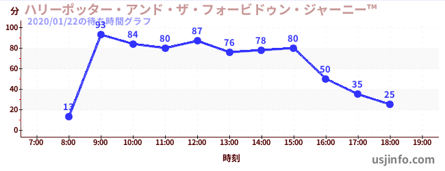 • ハリーポッター・アンド・ザ・フォービドゥン・ジャーニー™$B$N(B2020年01月22日の待ち時間
