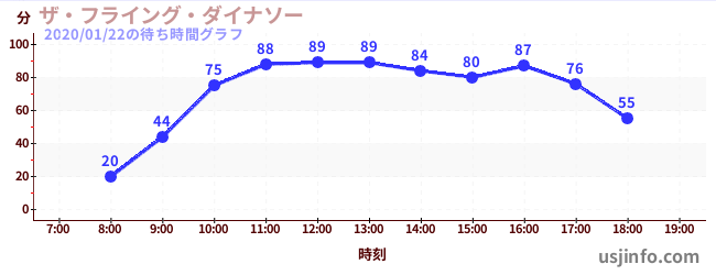 • ザ・フライング・ダイナソー$B$N(B2020年01月22日の待ち時間
