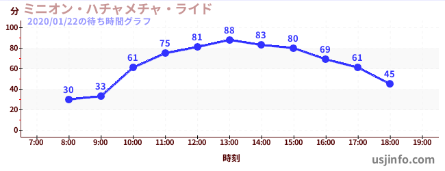 • ミニオン・ハチャメチャ・ライド$B$N(B2020年01月22日の待ち時間