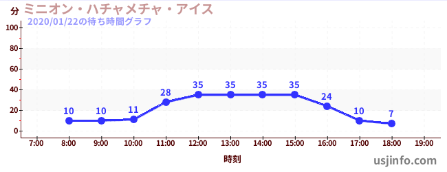 • ミニオン・ハチャメチャ・アイス$B$N(B2020年01月22日の待ち時間