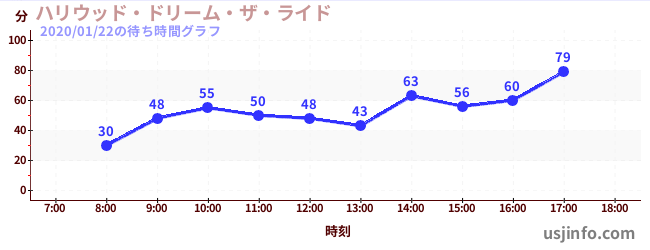• ハリウッド・ドリーム・ザ・ライド$B$N(B2020年01月22日の待ち時間