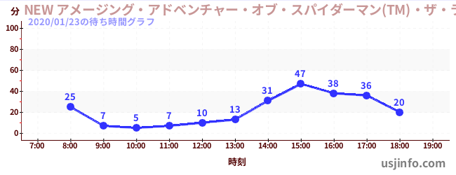 • NEW アメージング・アドベンチャー・オブ・スパイダーマン(TM)・ザ・ライド 4K3D$B$N(B2020年01月23日の待ち時間