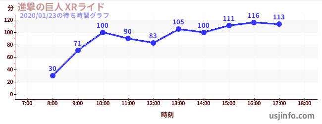 • 進撃の巨人 XRライド$B$N(B2020年01月23日の待ち時間