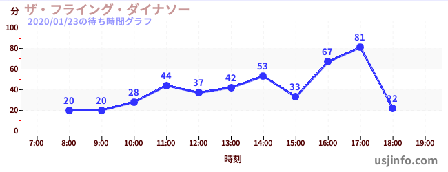 • ザ・フライング・ダイナソー$B$N(B2020年01月23日の待ち時間