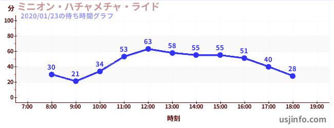• ミニオン・ハチャメチャ・ライド$B$N(B2020年01月23日の待ち時間