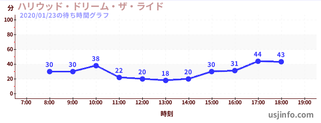 • ハリウッド・ドリーム・ザ・ライド$B$N(B2020年01月23日の待ち時間