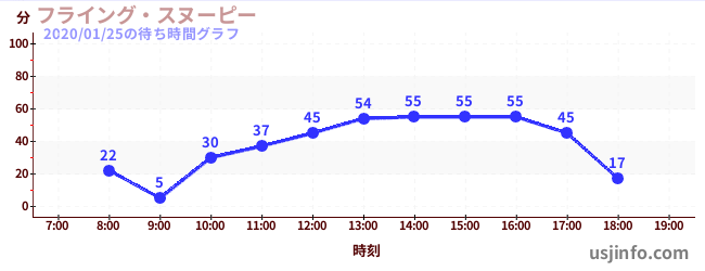 • フライング・スヌーピー$B$N(B2020年01月25日の待ち時間