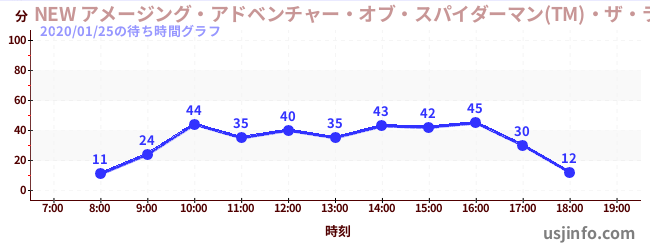 • NEW アメージング・アドベンチャー・オブ・スパイダーマン(TM)・ザ・ライド 4K3D$B$N(B2020年01月25日の待ち時間