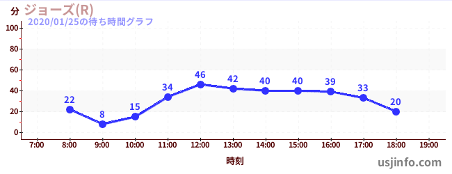 • ジョーズ(R)$B$N(B2020年01月25日の待ち時間