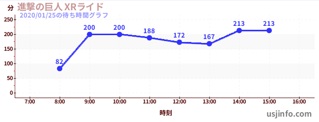 • 進撃の巨人 XRライド$B$N(B2020年01月25日の待ち時間