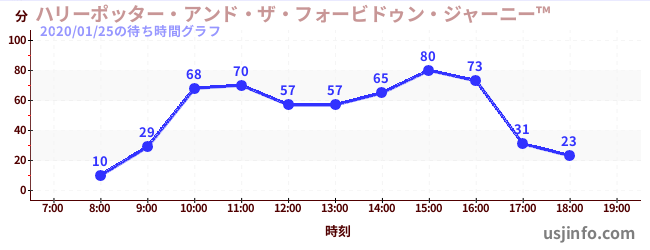 • ハリーポッター・アンド・ザ・フォービドゥン・ジャーニー™$B$N(B2020年01月25日の待ち時間
