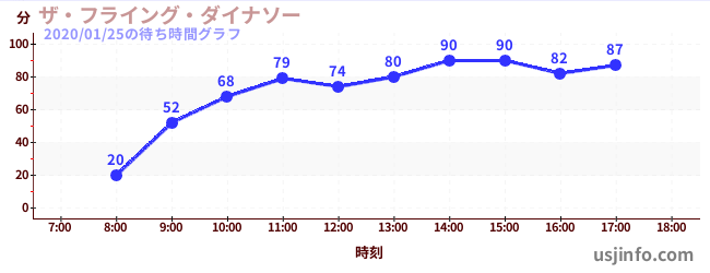 • ザ・フライング・ダイナソー$B$N(B2020年01月25日の待ち時間