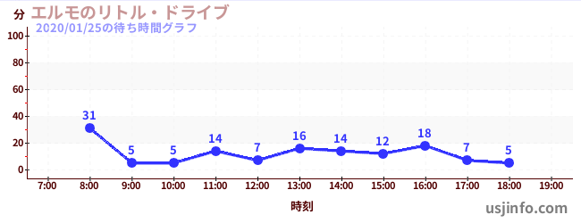 • エルモのリトル・ドライブ$B$N(B2020年01月25日の待ち時間