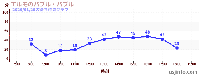 • エルモのバブル・バブル$B$N(B2020年01月25日の待ち時間