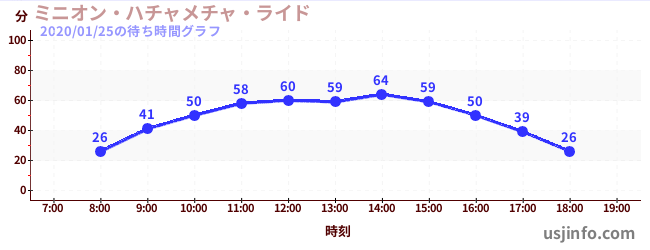 • ミニオン・ハチャメチャ・ライド$B$N(B2020年01月25日の待ち時間