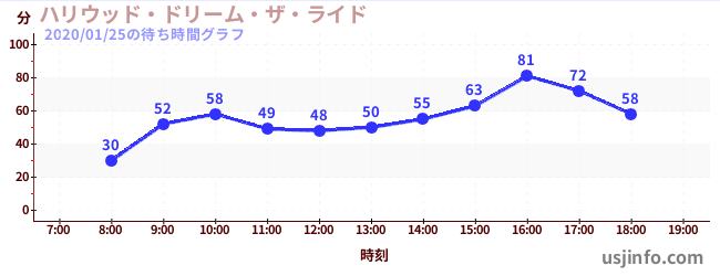 • ハリウッド・ドリーム・ザ・ライド$B$N(B2020年01月25日の待ち時間