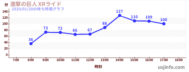 • 進撃の巨人 XRライド$B$N(B2020年01月28日の待ち時間