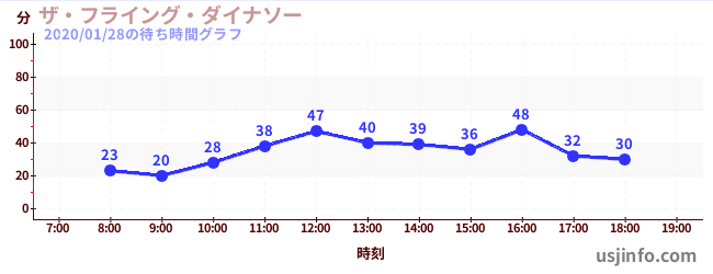 • ザ・フライング・ダイナソー$B$N(B2020年01月28日の待ち時間