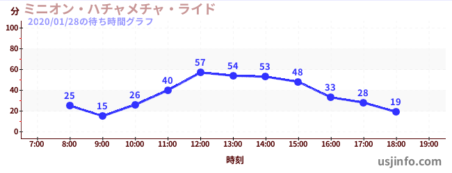 • ミニオン・ハチャメチャ・ライド$B$N(B2020年01月28日の待ち時間