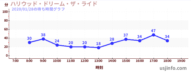 • ハリウッド・ドリーム・ザ・ライド$B$N(B2020年01月28日の待ち時間